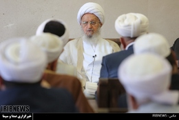 آیت الله مکارم شیرازی در حاشیه دومین کنگره بین المللی خطرجریانهای تکفیری درقم با علمای اهل سنت کشور دیدار کرد .