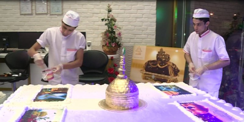 به گزارش خبرگزاری صدا و سیما  این کیک بزرگ  به مناسبت میلاد امام رضا علیه السلام در یکی از قنادی های رشت پخت و امروز توزیع شد.