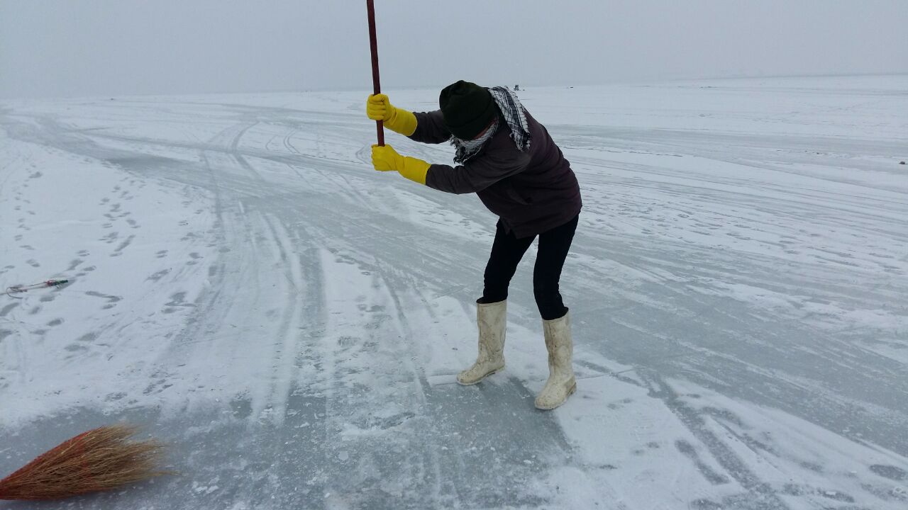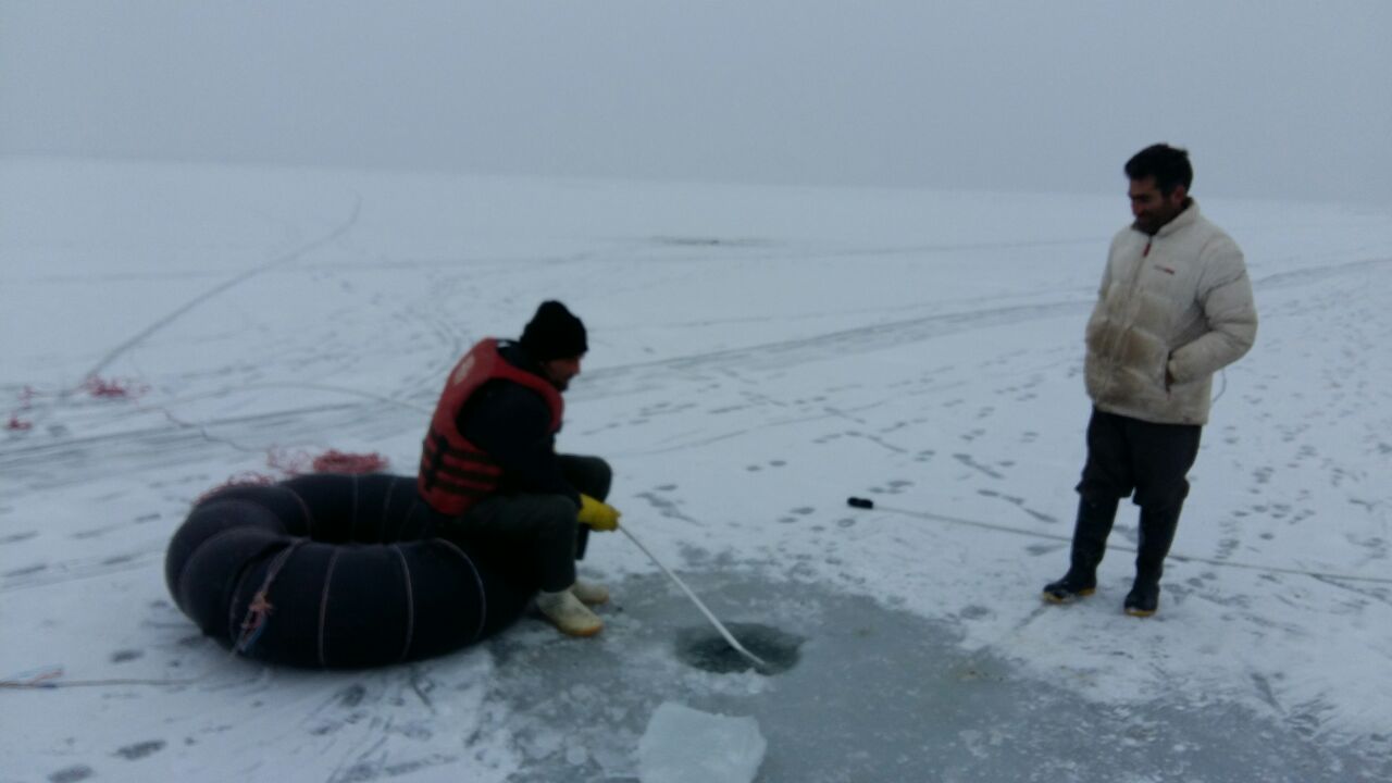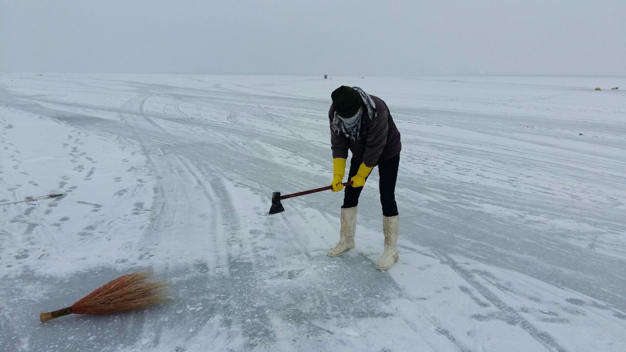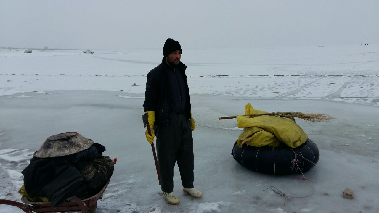 ماهیگیری از میان لایه های ضخیم یخ در سد ارس + فیلم