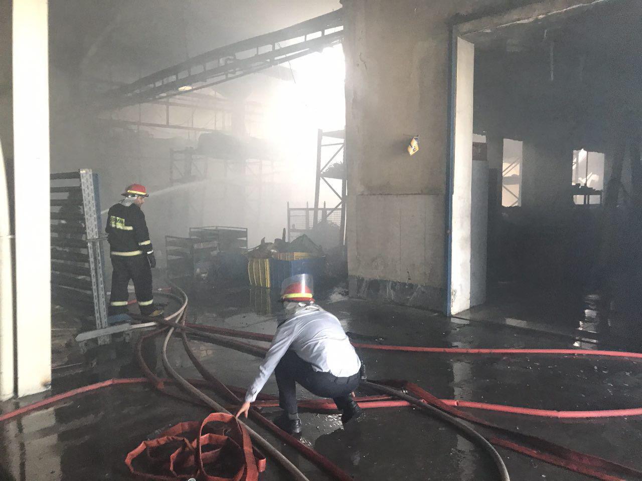 آتش در سه سوله کارخانه شده است . دراین آتش سوزی خسارت جانی نداشته ونیروی آتش