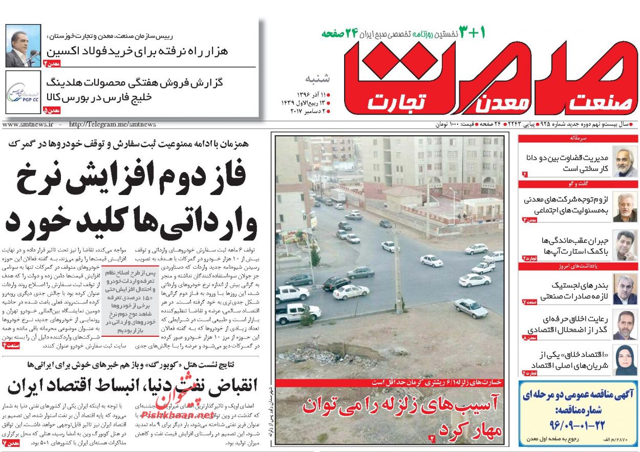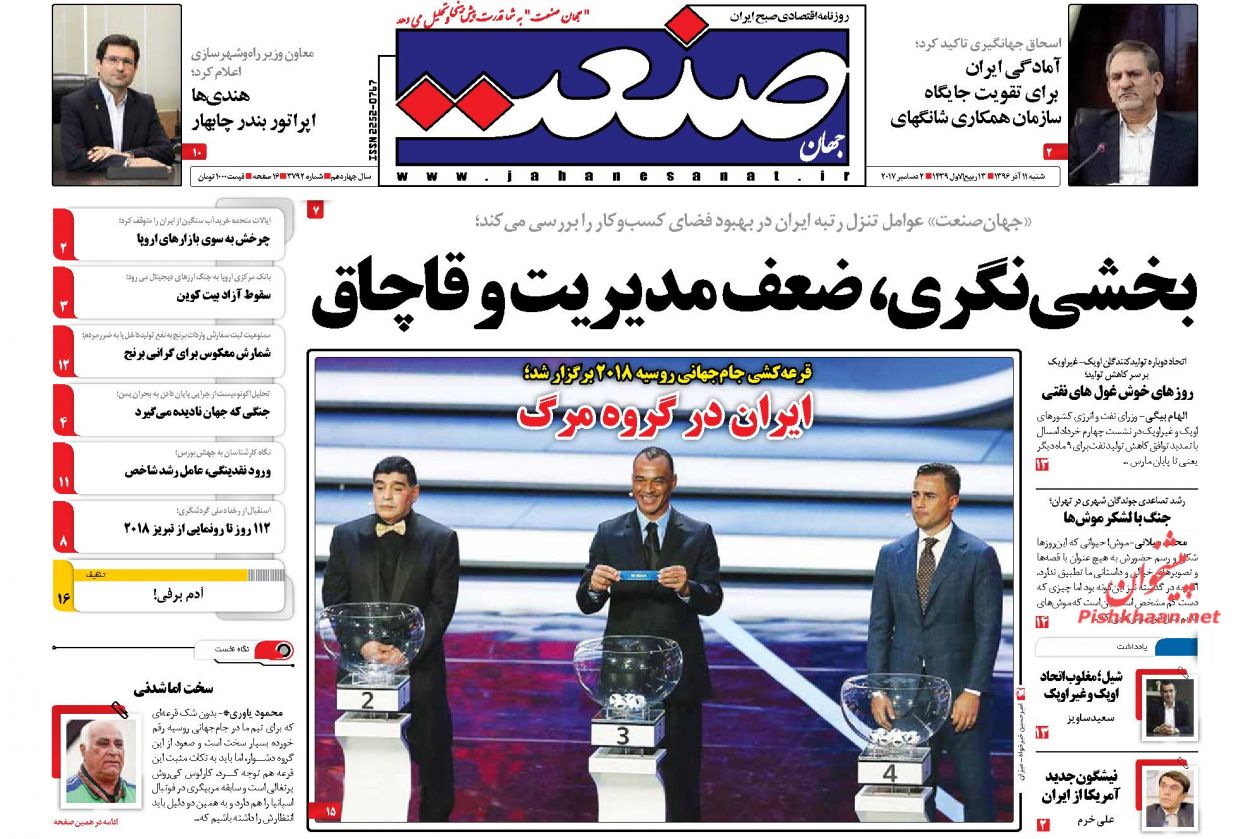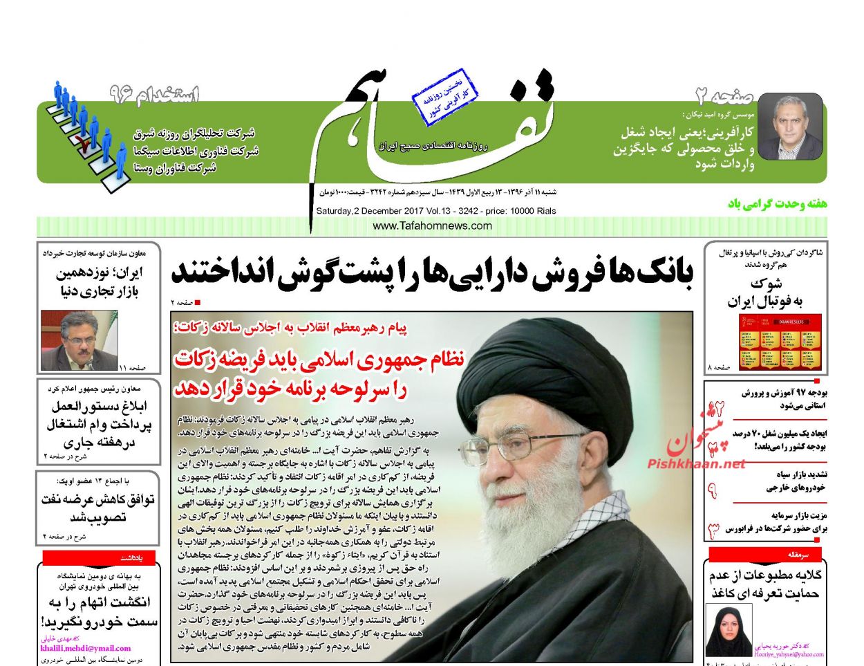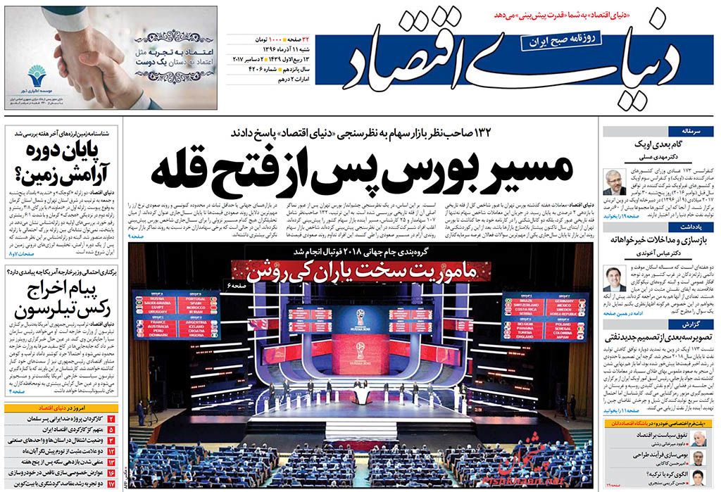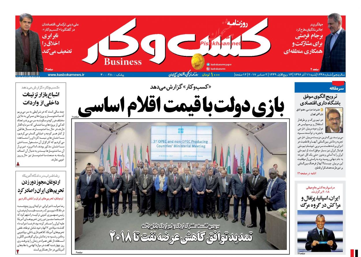 در پیشخوان امروز ، صفحه نخست روزنامه های اقتصادی شنبه 11 آذر 1396 را مشاهده می کنید.