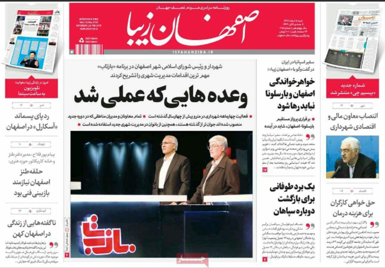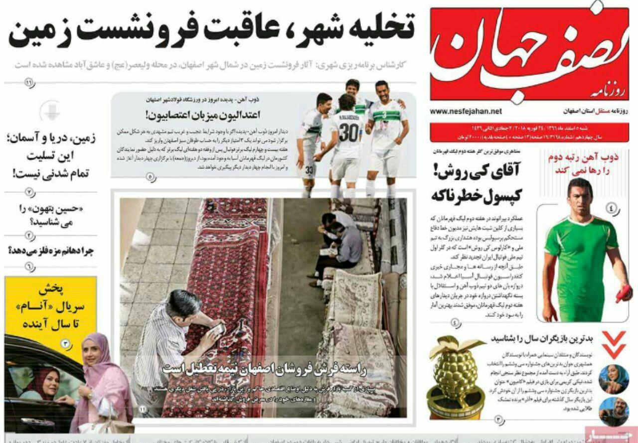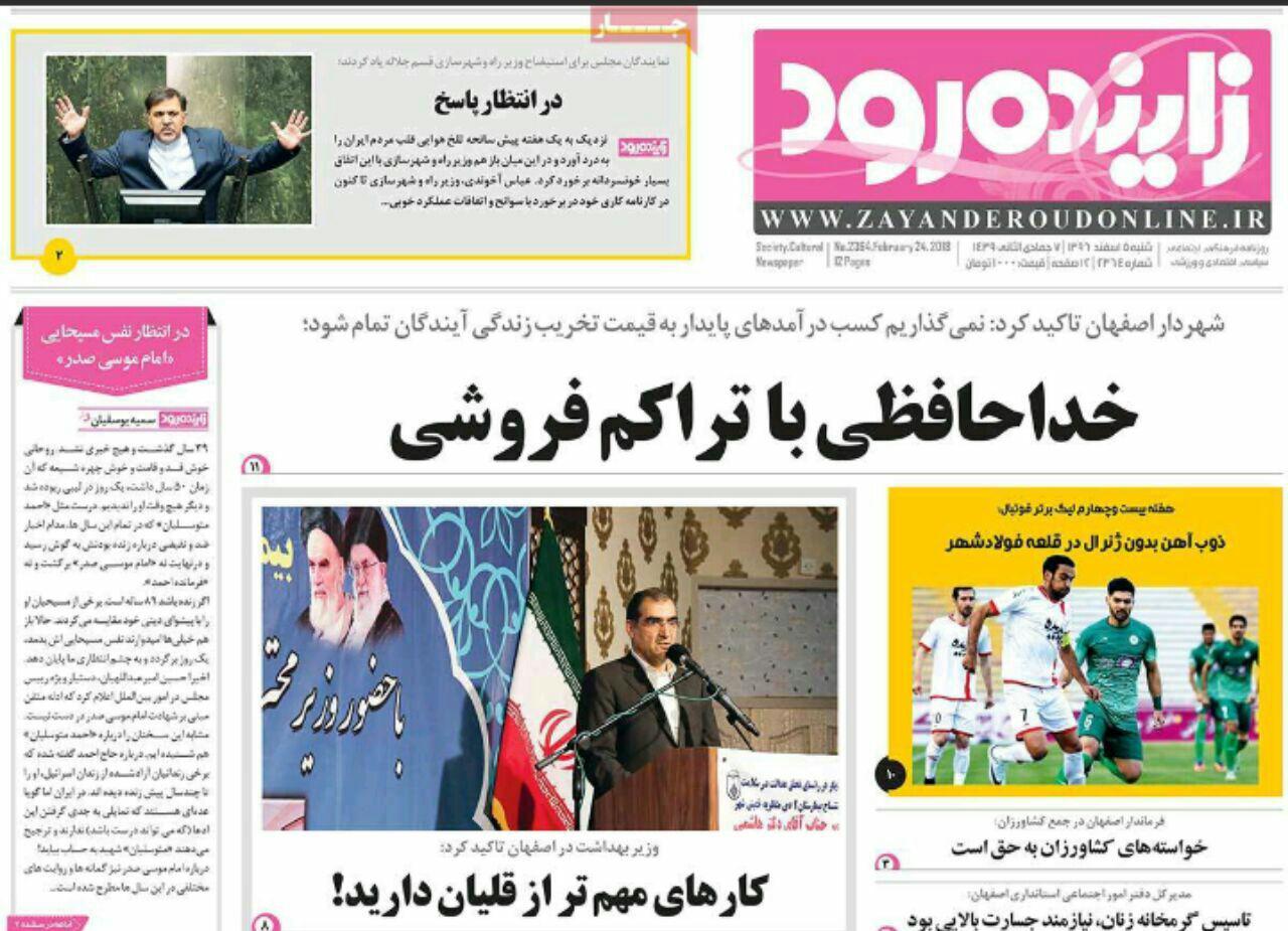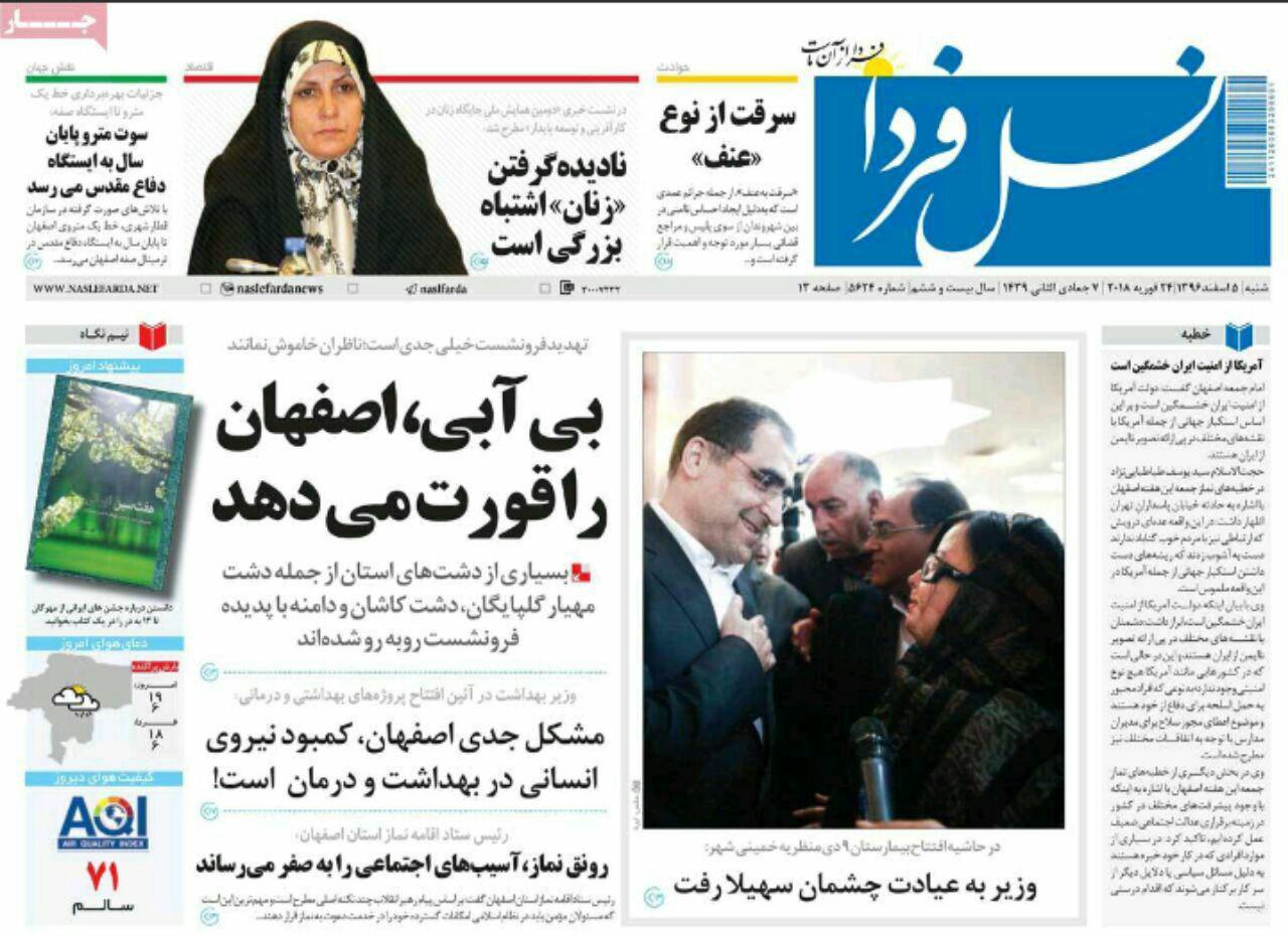 مشکل بی ۀبی اصفهان با تیتر" توهم ازدیاد آب در برخی مسوولان"و" بی آبی اصفهان را قورت می دهد" ،در روزنامه های امروز اصفهان آمده است.