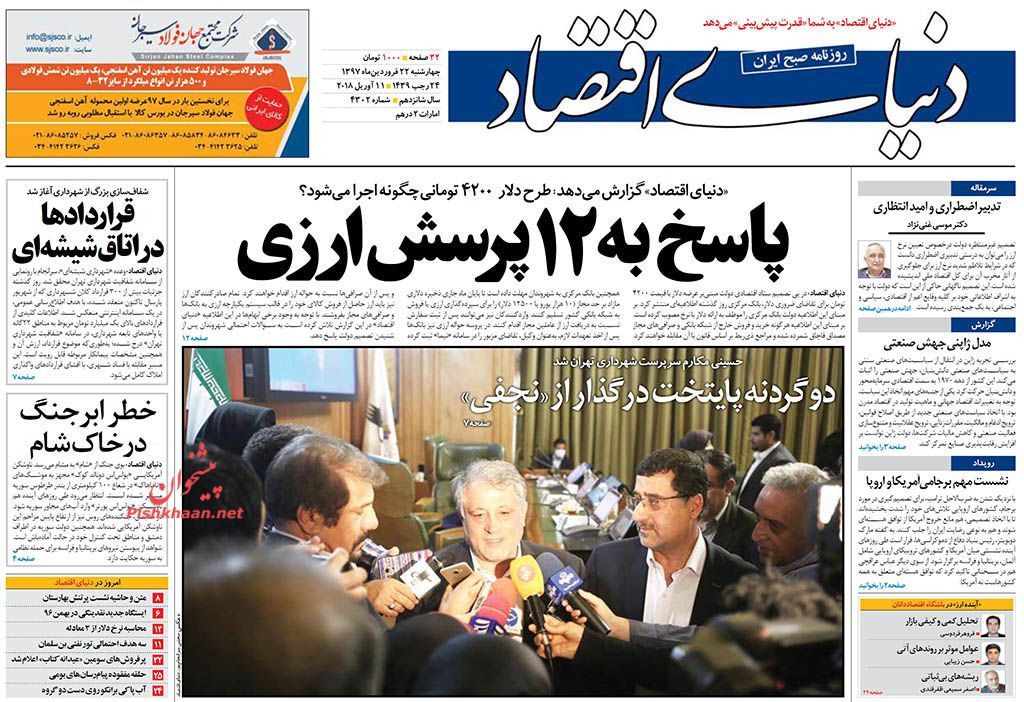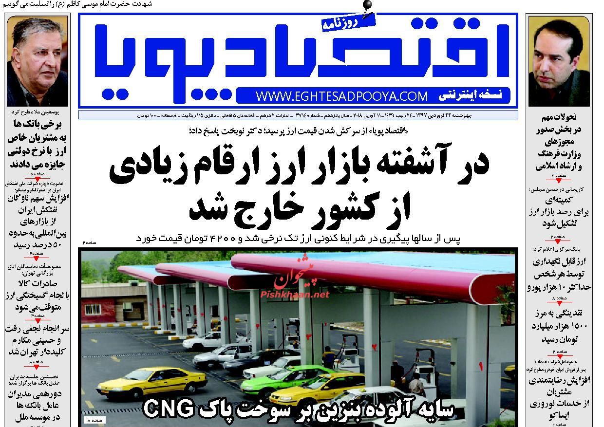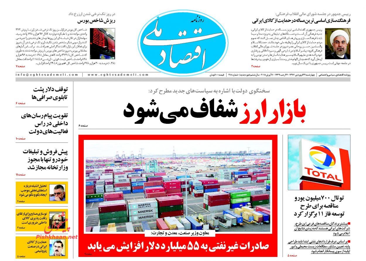 در پیشخوان امروز ، صفحه نخست و تیتر یک برخی روزنامه های اقتصادی چهارشنبه 22 فروردین 1397 را مشاهده می کنید.