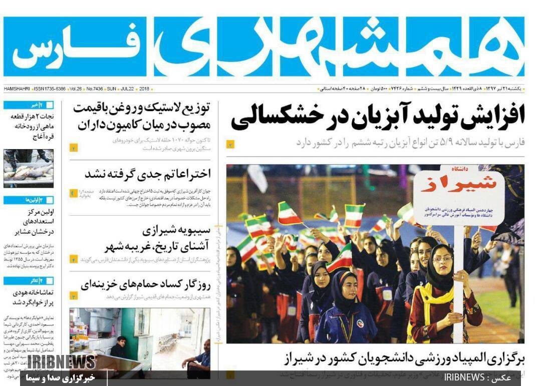 روزنامه‌های فارس یکشنبه ۳۱ تیر