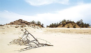 روییدن تاغ و گز در بیابان آفتاب سوخته قمرود