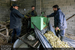 درشهرستان صومعه سرا به دلیل داشتن زمین های تالابی نیشکر کاشت می شود.کشت قلمه‌های نیشکر از ماه های فروردین و اردیبهشت آغاز و در پایان پاییز و اوایل زمستان برداشت می‌شود.روستاهای قاضده، کلسر، میانده و روستای سنگجوب، راسته کنار و چمثقال از مهمترین روستاهای صومعه سرا هستند که کشت نیشکر در آنها انجام می شود و در کارگاه های سنتی شان شکر قهوه ای استحصال می شود.بعد از جمع آوری نیشکر از مزارع، مرحله فرآوری آن در کارگاه هایی که در زبان محلی به آن «شکرلوله» می گویند، آغاز می شود و بعد از کندن پوسته رویه نیشکر، آب آن با استفاده از دستگاه گرفته شده و آب حاصل از نیشکرها را در داخل ظرف فلزی بزرگی می ریزند.بعد از مرحله استحصال آب نیشکر، آن را درون دیگ های بزرگی که در وسط کارگاه تعبیه شده ریخته و بین شش تا هشت ساعت می جوشانند تا بیش از ۹۰ درصد آب نیشکر تبخیر شده وکف قهوه ای رنگ در سطح دیگ جمع شود که پس از برداشتن کف، مایع سیاه رنگ باقی می ماند که به آن «دوشاب» گفته می شود.برای تبدیل دوشاب به شکر، دوباره باید حرارت دهی ادامه یابد تاجایی که این مایع تبدیل به شکری به رنگ قهوه ای روشن یا تیره شود و پس از آماده شدن شکر آن را داخل قالب ریخته و در جای خنک قرار می دهند تا سفت شود.شکر قهوه ای برای درمان یرقان، فاویسم و کم خونی مفید است.