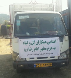 عاشقان رضوی دیار علویان برای گل آرایی آستان قدس در دهه کرامت، نذر گل کردند.