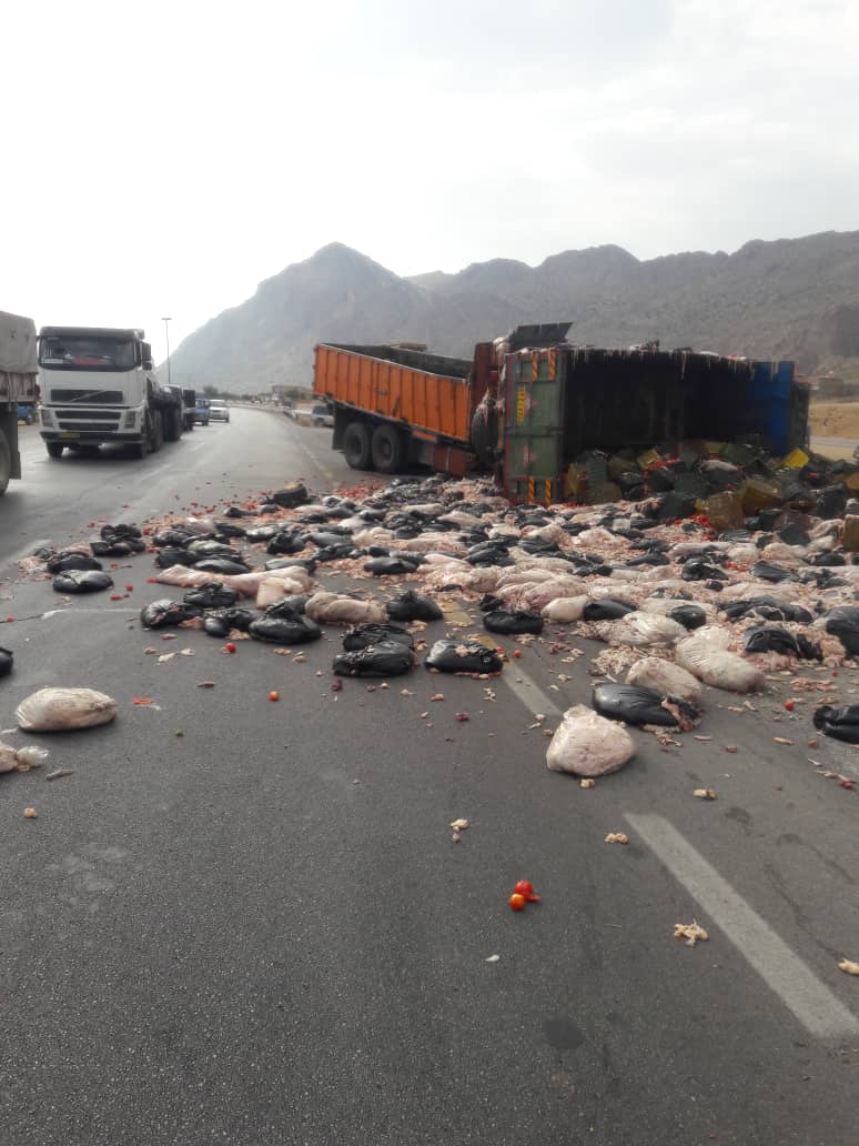به گزارش خبرگزاری صدا و سیما، مرکز فارس، سروان انصاری کارشناس پلیس راه سعادتشهر گفت: در حادثه برخورد دو کامیون در جاده شیراز اصفهان در بیست کیلومتری سعادتشهر یکی از رانندگان مجروح و به بیمارستان منتقل شد. انصاری افزود: یکی از این کامیونها حامل گوجه فرنگی، و دیگری حامل ضایعات مرغ بود . وی علت این حادثه را گردش به چپ یکی از کامیونها در حین دور زدن اعلام کرد.