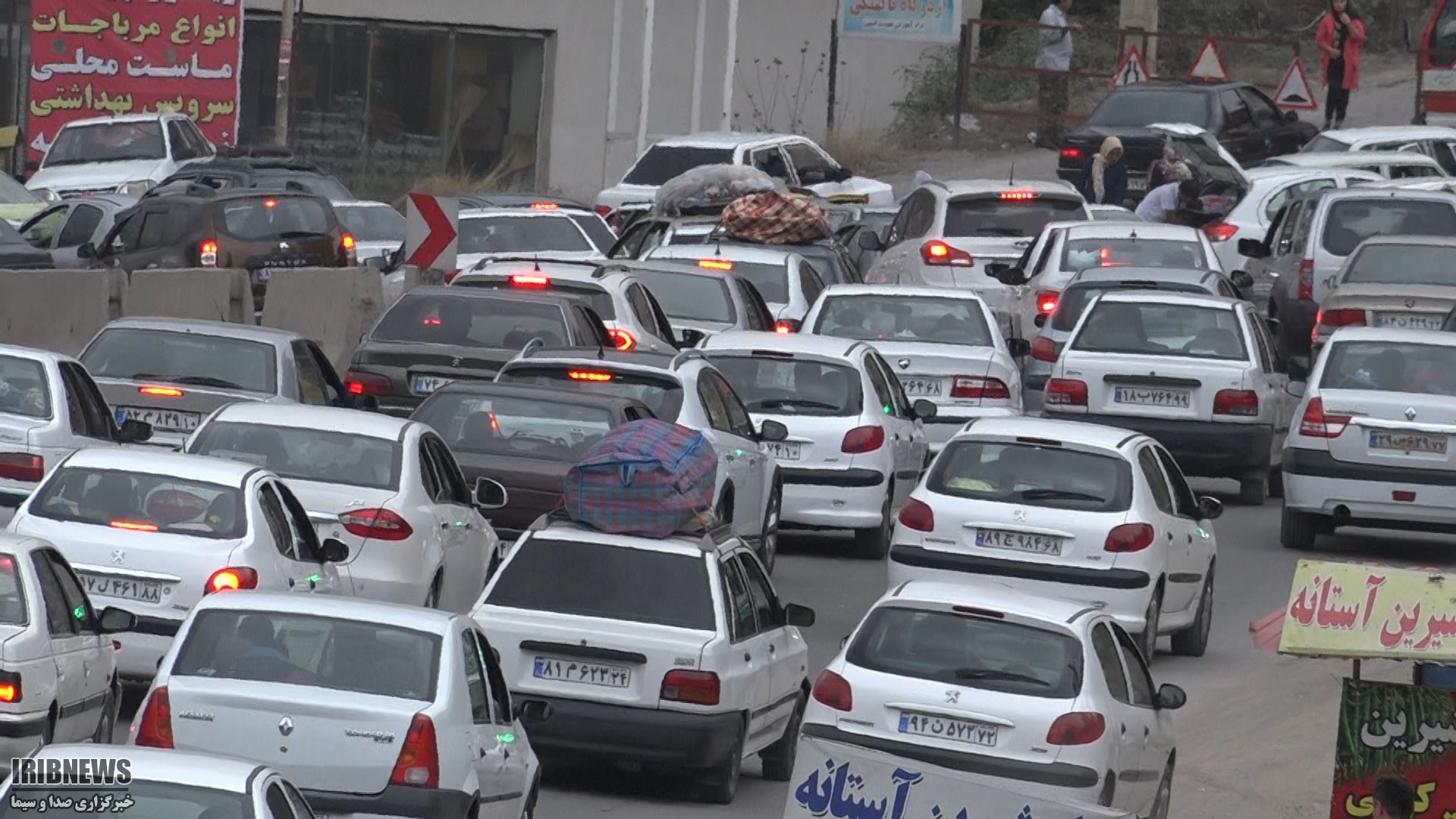 جاده کرج – چالوس پاییزش فوق العاده زیبا بود اما ... هرچه به مرزن آباد نزدیک تر می شدیم تعداد خودروهای بیشتر و بیشتر می شد تا جای که دیگرحرکت متوقف شد و با ایست و حرکت های طولانی ، سه ساعت در ترافیک سنگین مانده بودیم و نمی دانستیم قراراست چند ساعت دیگربه مقصد برسیم .