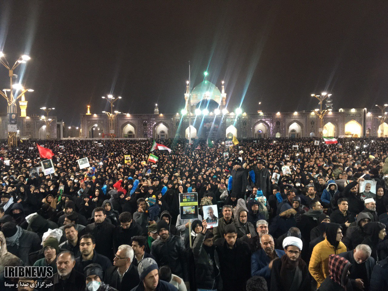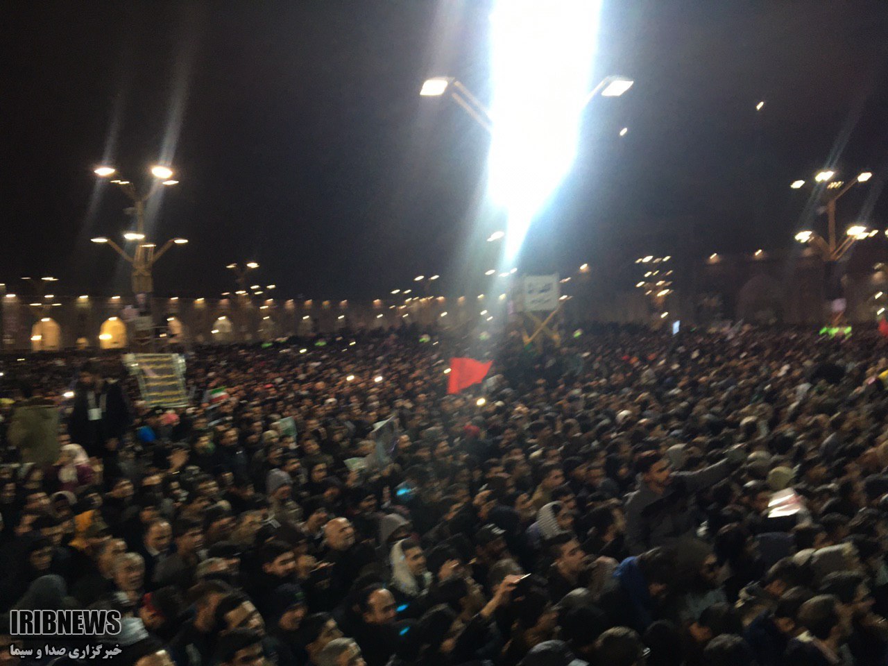 پس از ساعتها تشییع، پیکر مطهر شهدای مقاومت در میان حزن و اندوه به حرم مطهر رضوی وارد شد.این وداع باشکوه سردار دلها با امام مهربانیهاست.