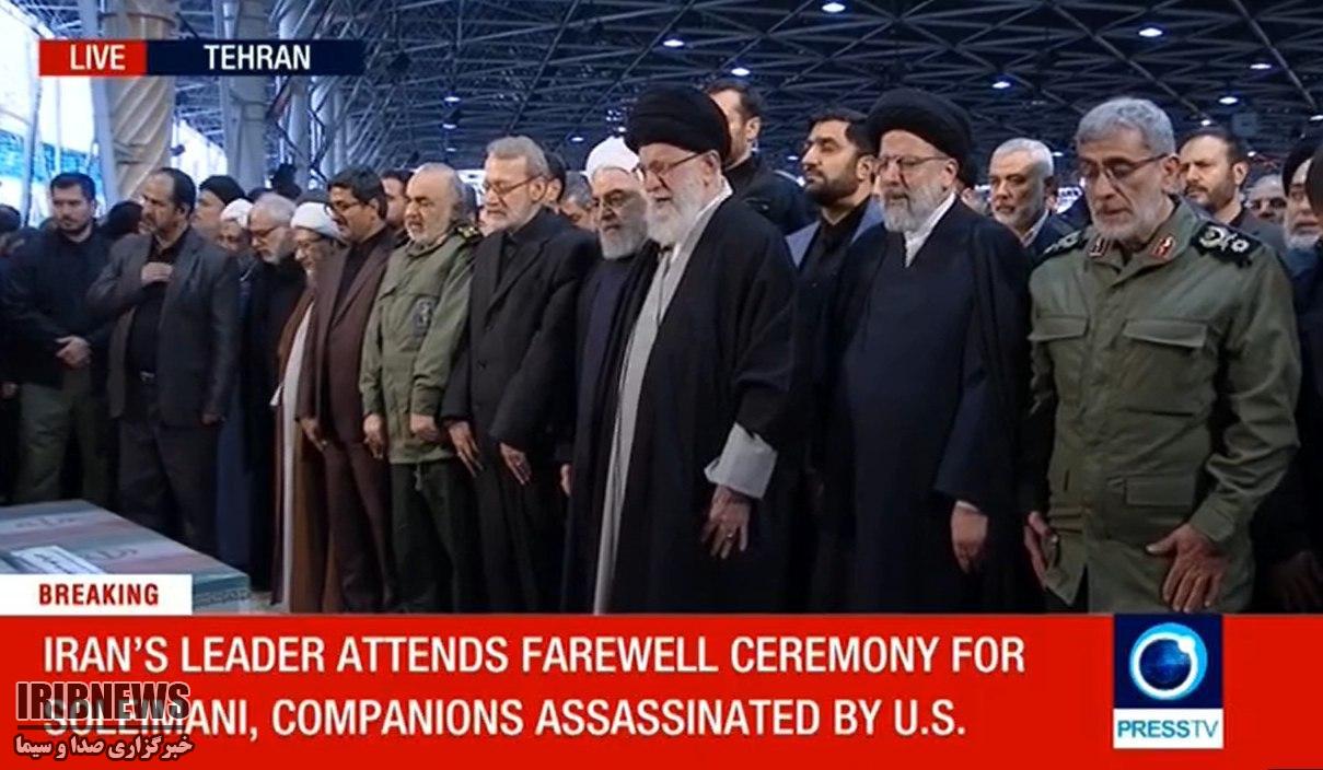 پخش زنده اقامه نماز بر پیکر شهدای مقاومت با حضور مقام معظم رهبری از شبکه های مختلف