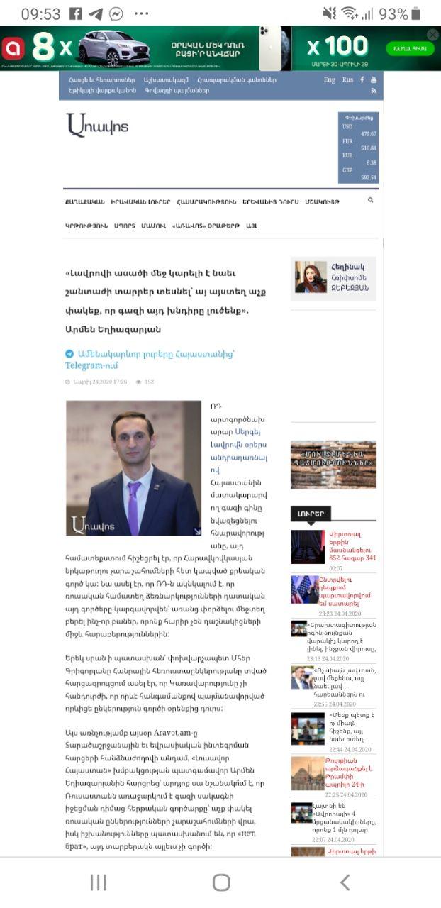 - مدیرکل " مولتی گروپ" بزرگترین شرکت زنجیرهای ارمنستان دستگیر شد. دلیل دستگیری اعلام نشده است.