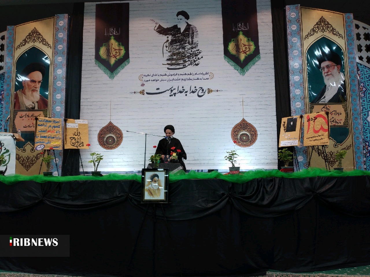 مداحی و سخنرانی نماینده ولی فقیه در استان از برنامههای این مراسم و محور سخنرانی آیت الله عبادی، سیره امام، شاخصهای امام و دستاوردهای تفکر امام در بحث " ما میتوانیم و مقاومت در برابر ظلم و ستم " بود.