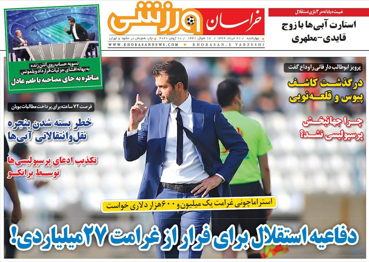 نیم صفحه اول روزنامه های ورزشی امروز؛