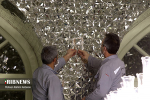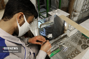 به گزارش گروه عکس خبرگزاری صدا و سیما؛ حاصل هنر آینه کاری، ایجاد فضایی درخشان و پر تلألو است که از بازتاب پی در پی نور در قطعات بی شمار آینه پدید می‌آید. در حرم امام رضا علیه السلام از شیوه‌های متنوعی از آینه کاری استفاده شده است. گچبری روی آینه که با نقاشی همراه است آینه تصویر نامیده می‌شود؛ استفاده از گچ و آینه را در تزئین رواق‌های دارالرحمه و دارالهدایه با به کارگیری طرح گره می‌توان مشاهده کرد.