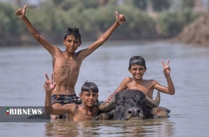 ابو علی، به گاومیش هایش که حالا فقط سرشان از آب بیرون بود خیره شده بود.صدای کودکانی که درآب جست وخیز میکردند فضا را پُر کرده بود .