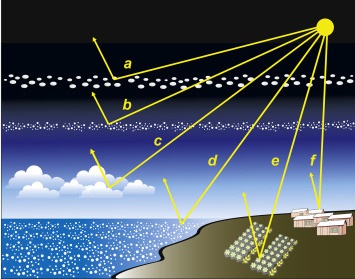 در فرآیند ژئومهندسی خورشیدی، ذرات انعکاسی می‌توانند به استراتوسفر (لایه دوم جو زمین، بیش از ۲۰ کیلومتر بالاتر از سطح زمین) فرستاده شوند، اشعه خورشید را به فضا برگردانند و سیاره زمین را خنک نگه‌دارند.