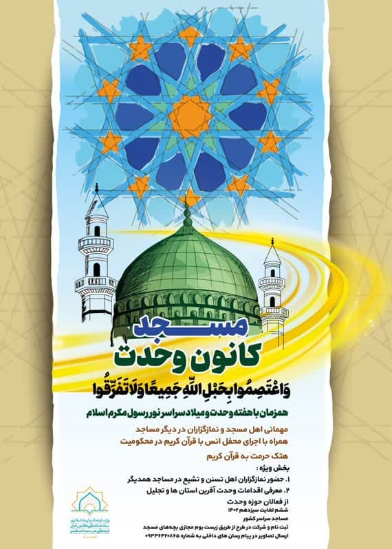 ستاد هماهنگی کانونهای فرهنگی و هنری مساجد کشور پویش «مسجد، کانون وحدت» را همزمان با هفته وحدت و در آستانه سالروز ولادت پیامبرگرامی اسلام (ص) راه اندازی کرد.